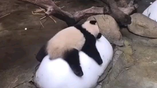 熊猫抱冰块有多可爱 欢迎收看熊猫碎冰冰