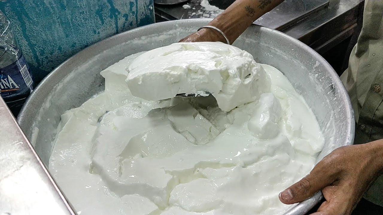 印度特色奶昔是这样做出来的!巨大的盆里全是酸奶!好想喝啊!