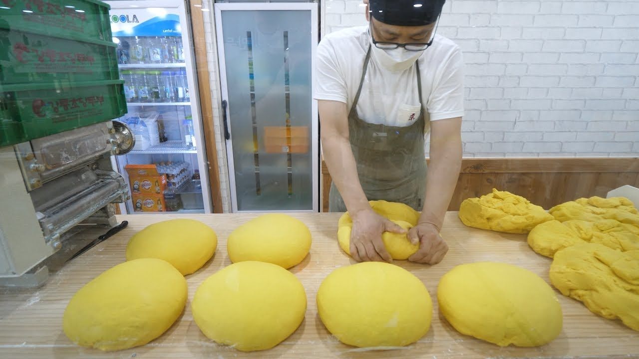 韩国面店达人现场制作手工刀切面,看着干净吃起来美味!