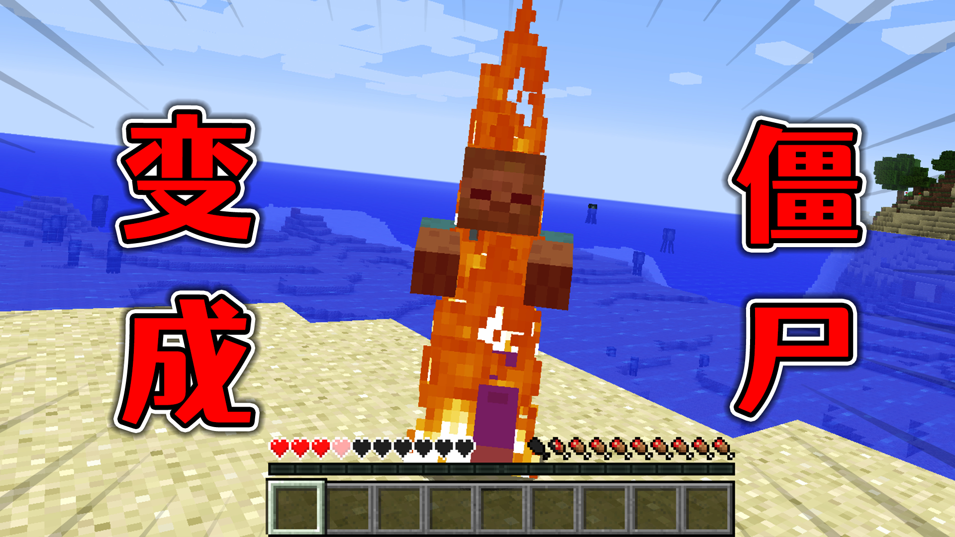 我的世界:变成僵尸该如何生存?看到太阳就会着火!生活如此艰难
