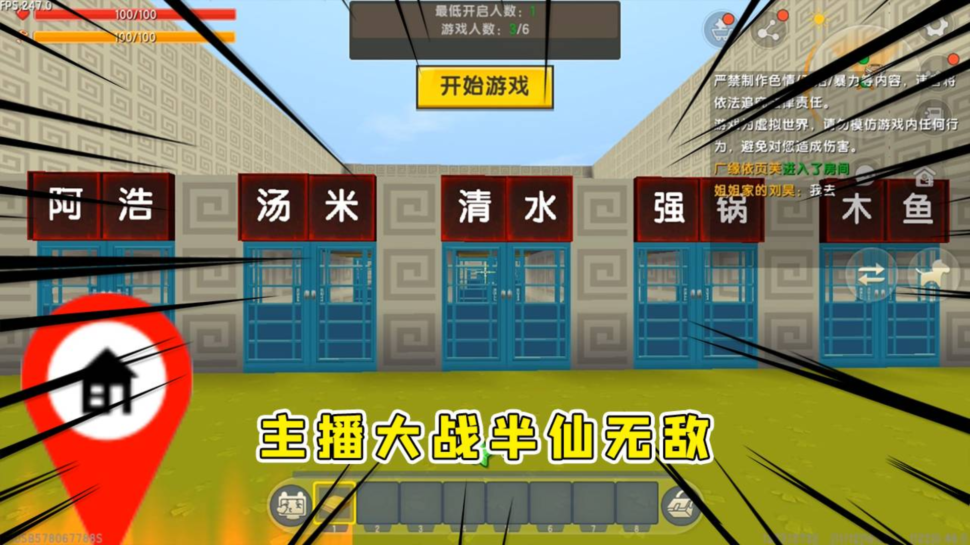 迷你世界:主播大战半仙无敌,选到半仙职业直接无敌,小伙伴都被卡出地图