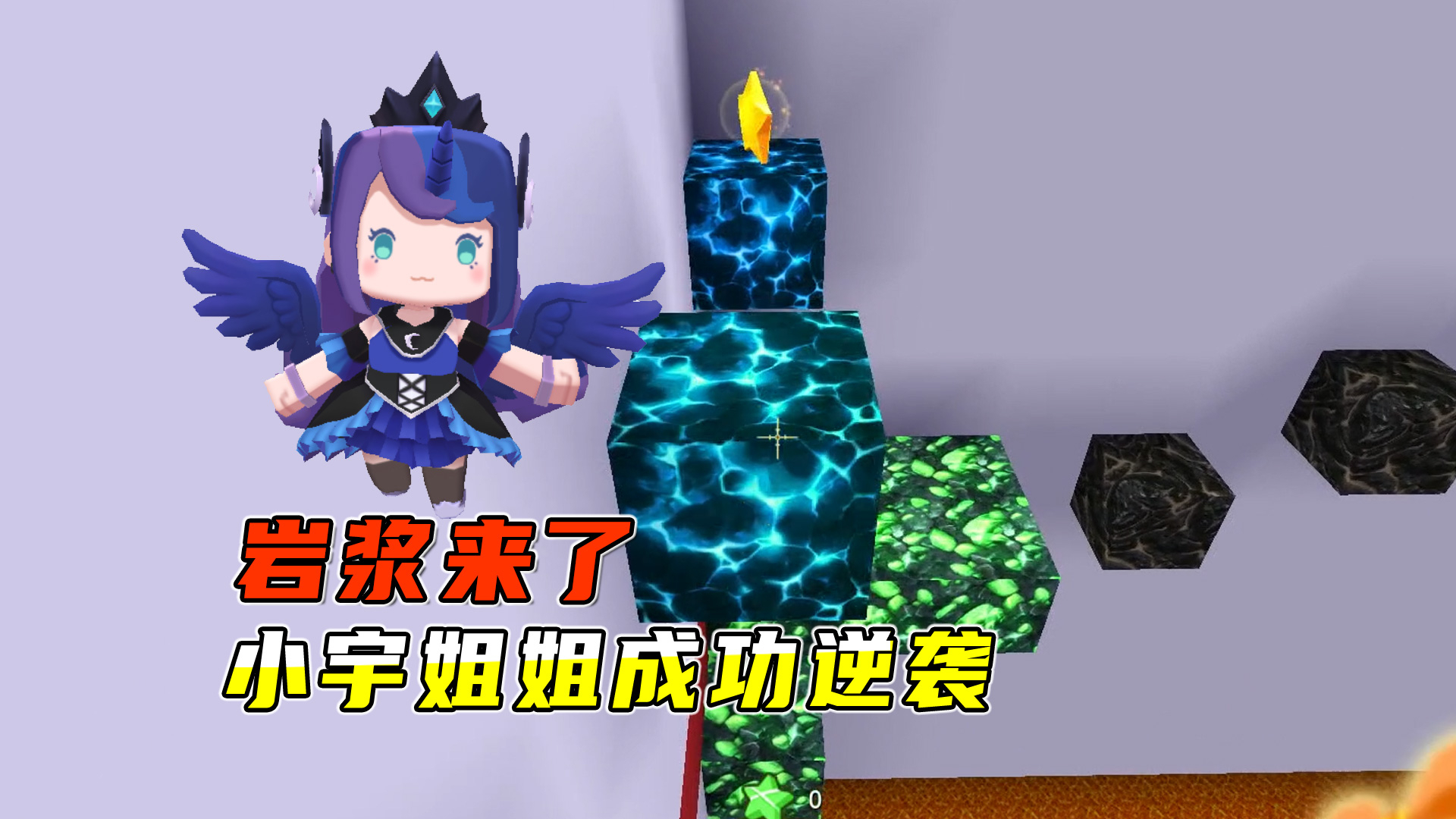 迷你世界:岩浆来了小宇姐姐成功逆袭,倒着跳吃小星星,嘚瑟的很