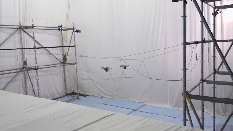 瑞士的一个研究小组通过将无人机牵引超轻绳索,在完成一系列复杂的动作,将绳索连接,缠绕并打结,从而建成了一个可以单人通过的悬索吊桥。