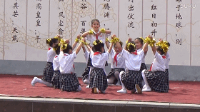 小学女生们在台上表演节目