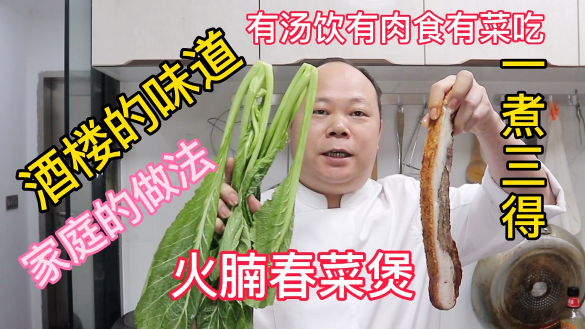 大厨教你,烧肉春菜煲的家常做法,有汤饮有肉食有菜吃,一煮三得