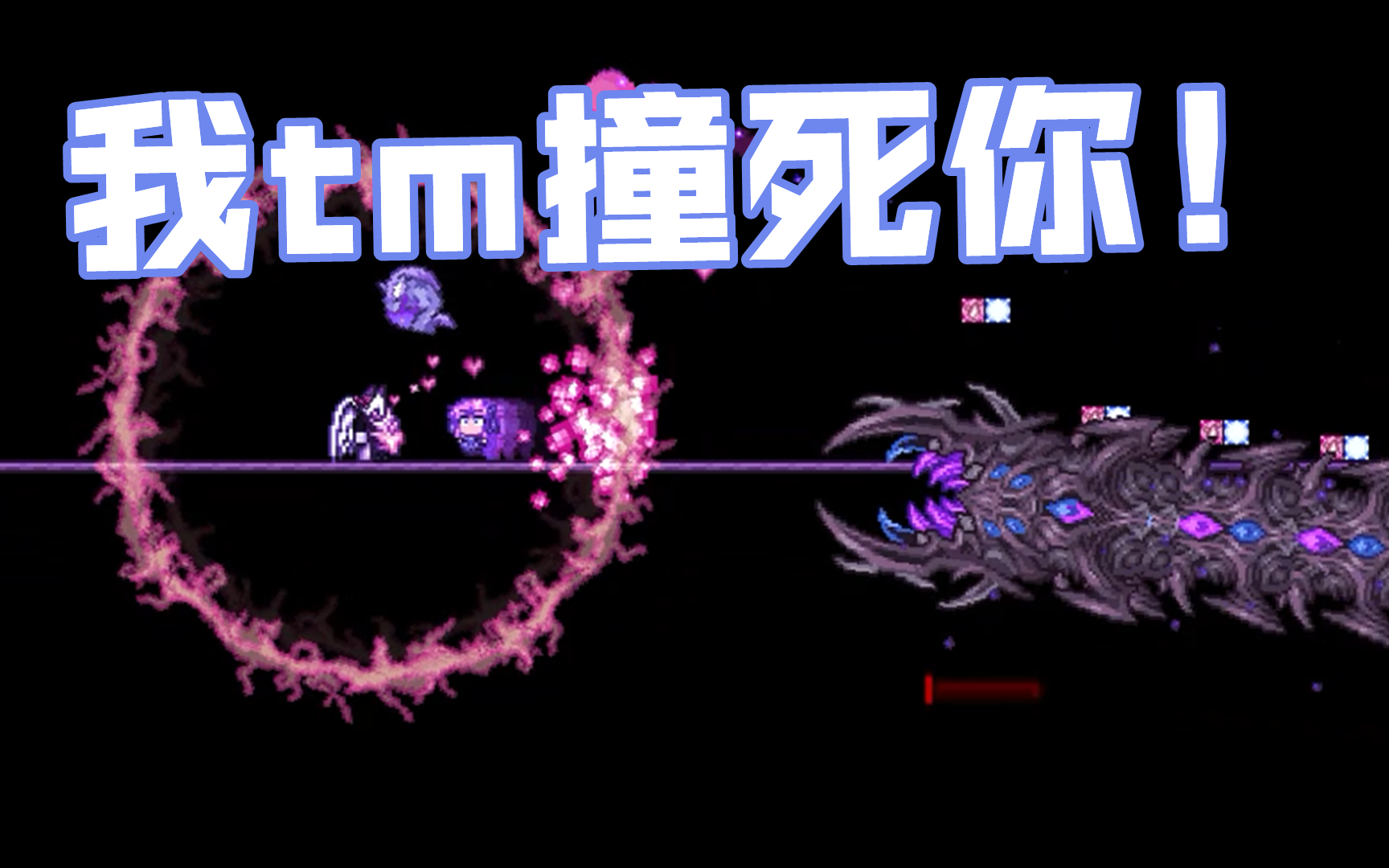 打了不少mod,在这些东西的加持下再配合一些神吞前的装备我才淦倒了复仇神吞,死亡神吞总是被头撞死,有一次尝试在最后一击的时候想迎头冲撞结果神吞的伤害判定先来然后我被撞死了神吞带着0.3%的血跑了岂可修!