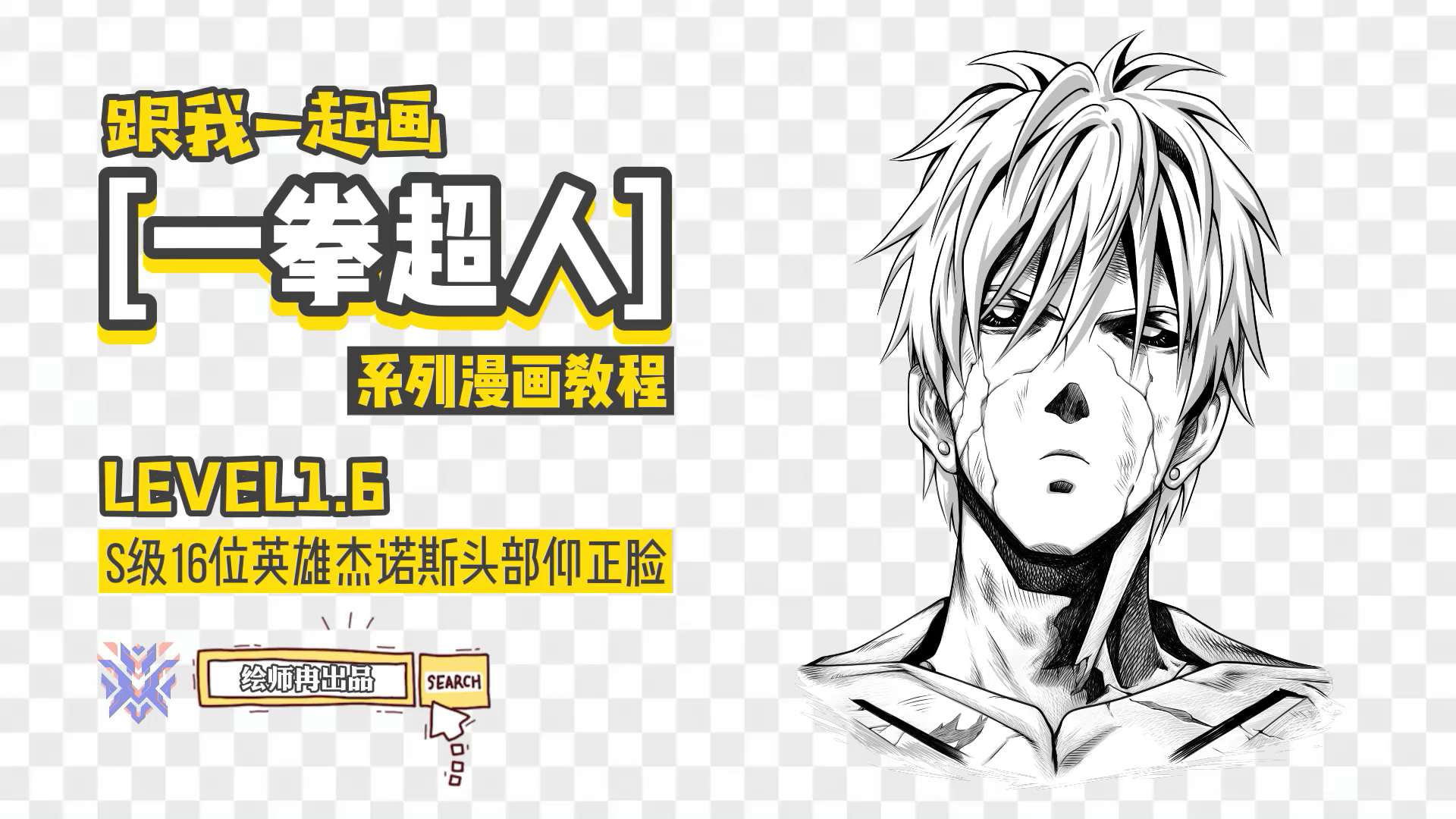 1.6期跟我一起画《一拳超人》杰诺斯头部仰正脸绘画教程