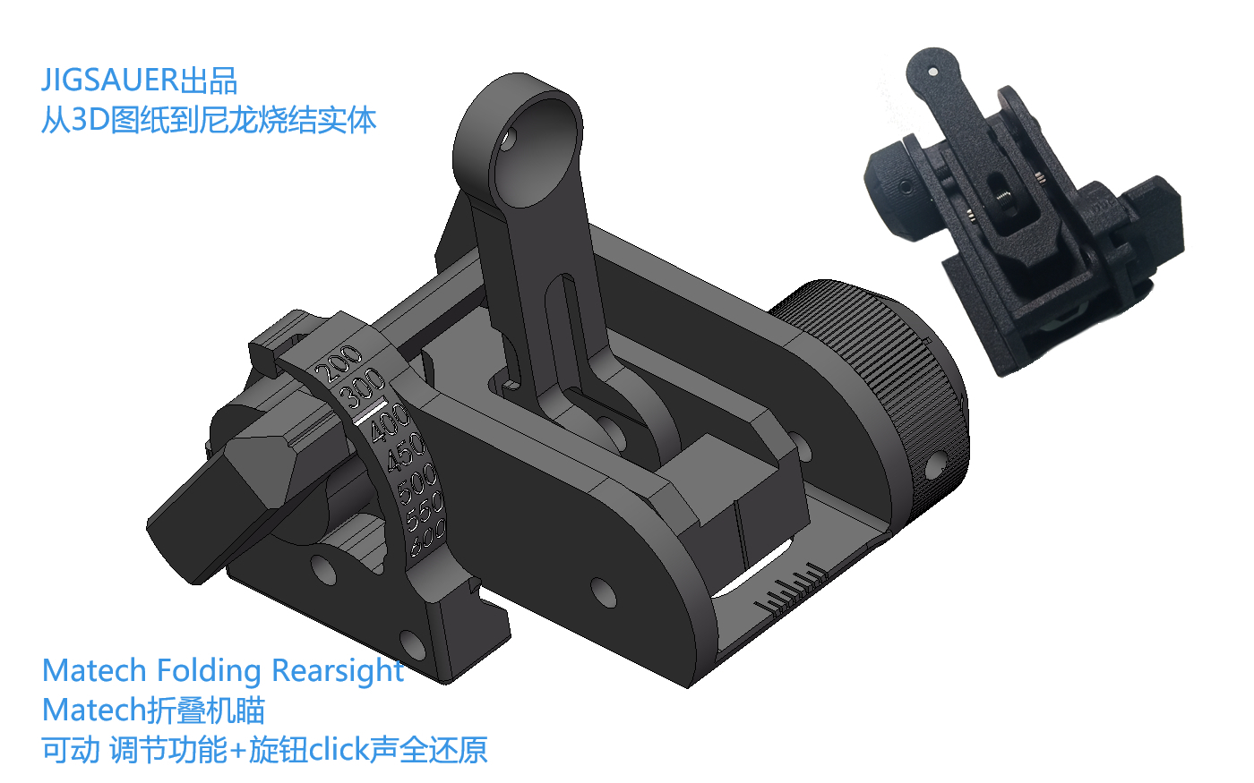 【JIGSAUER3D打印】高仿Matech折叠机瞄 尼龙烧结可动模型 调节功能全还原