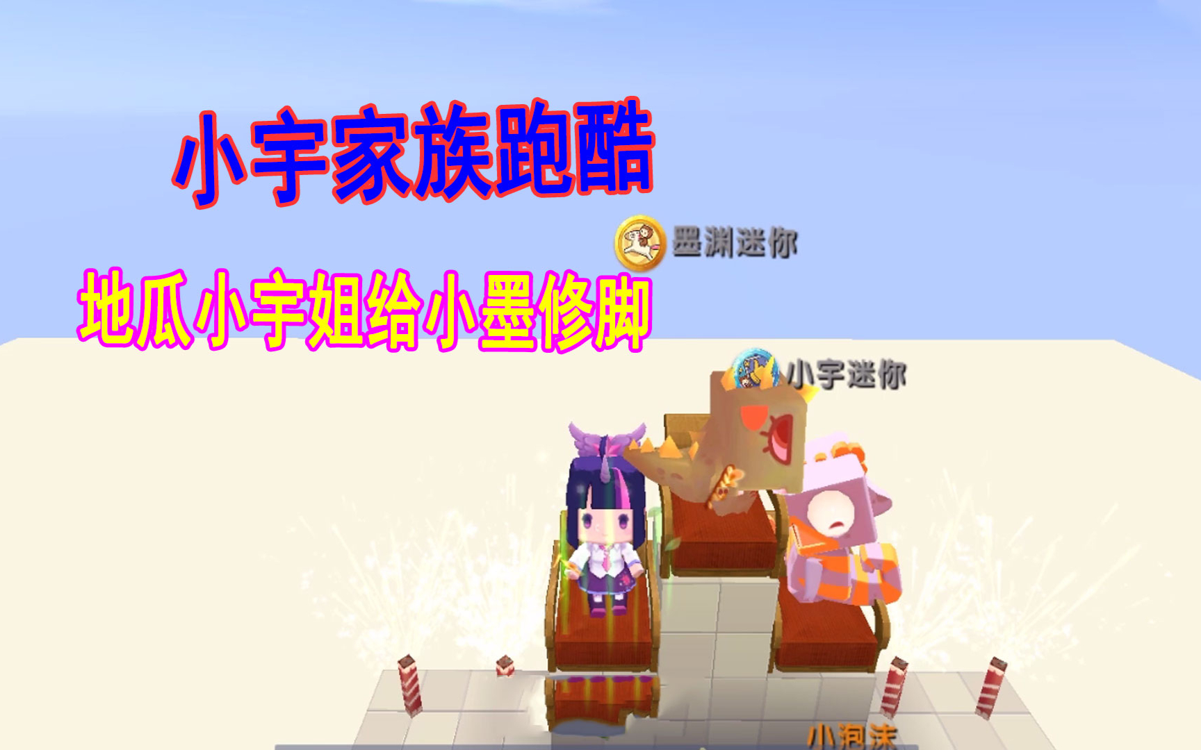 迷你世界:小宇家族跑酷,地瓜被空气方块卡的怀疑人生