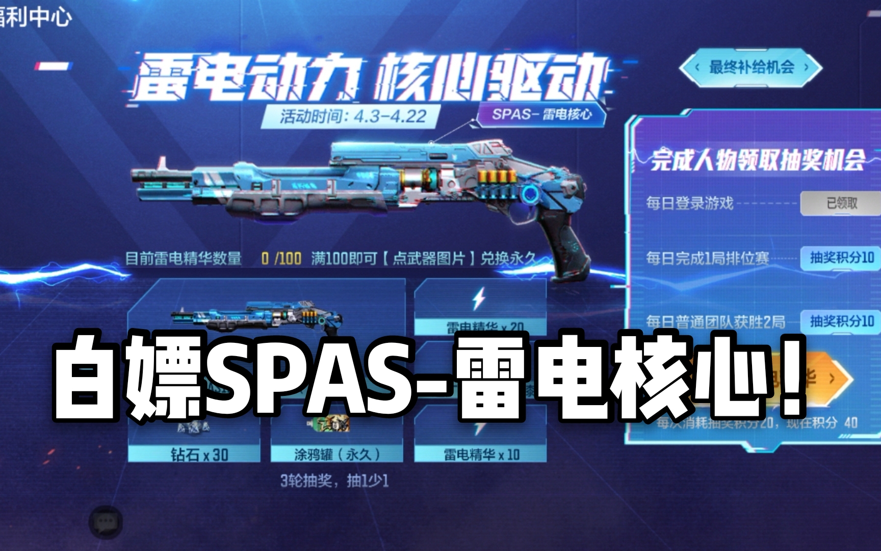 新活动SPAS-雷电核心任务拿永久,武器实验室领女妖之咒!