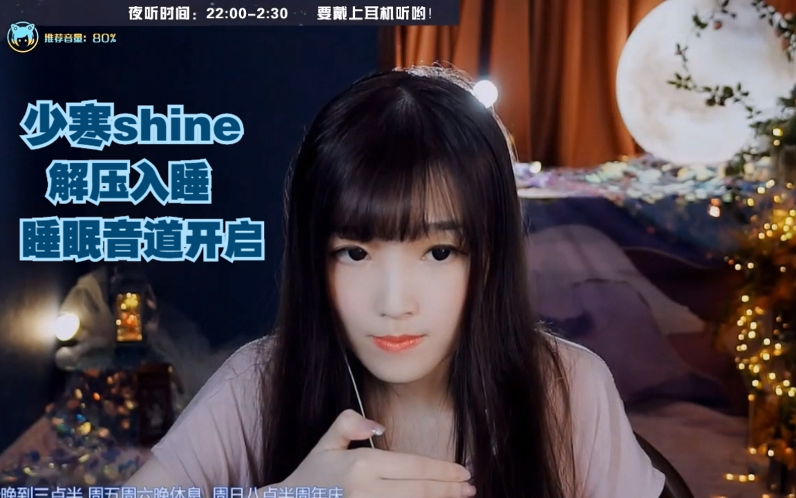 点赞+关注 支持一下哦~ 少寒shine歪歪直播间:1357 欢迎加入少寒QQ粉丝群:661593510 少寒直播时间: 22:00-02:30 夜听,周五休息,周六20:00~22:00 娱乐档 。 每感谢大家陪伴~