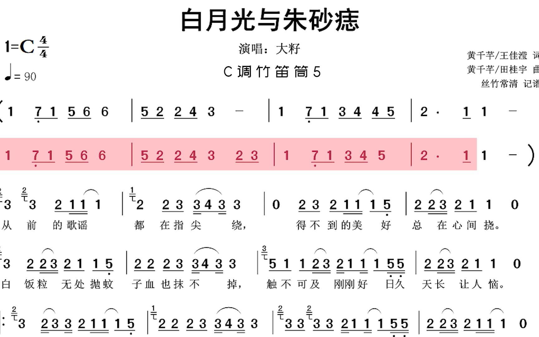 动态乐谱《白月光与朱砂痣》笛子版,让零基础的你也能轻松跟得上