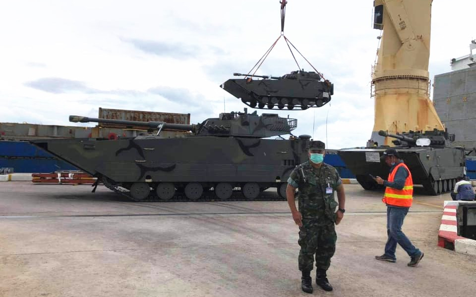 近日,泰国皇家海军陆战队接收了一批来自中国的武器装备,其中最重要的是首批送到的3台VN-16两栖突击车。据称泰国一共采购了两批十几台VN-16和VN-18两栖装甲车。VN-16其实就是解放军装备的05式两栖突击车的外贸型号,VN-18则是05两栖步战车的外贸型号。可以确定,泰国采购这批两栖作战车辆,是为之前向中国采购的071E登陆舰而准备的。