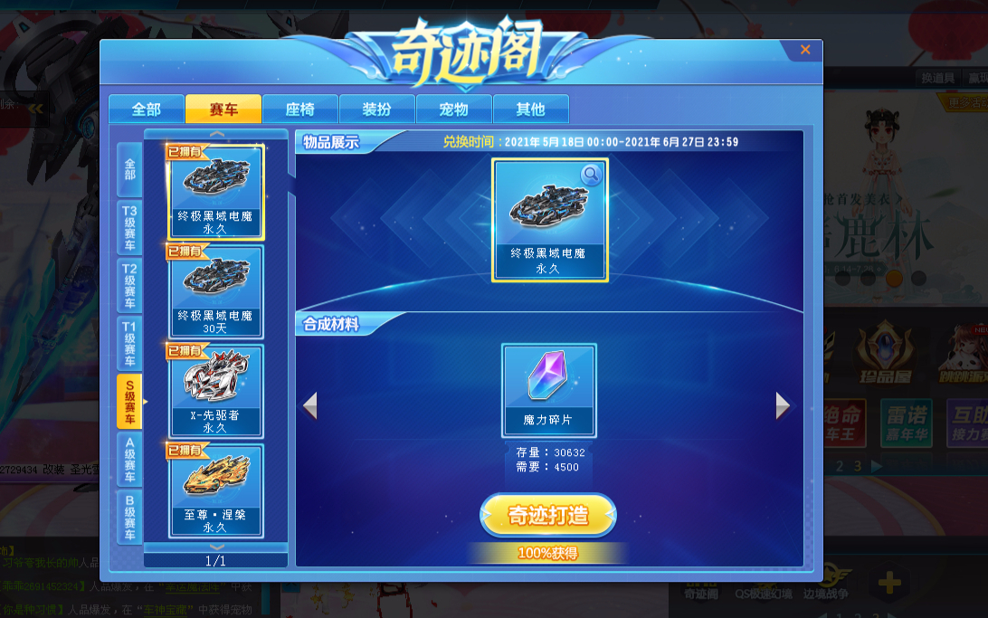 QQ飞车朕哥:指定终极黑鱼电摩只要3000多!奇迹阁4500魔力碎片百分百打造永久