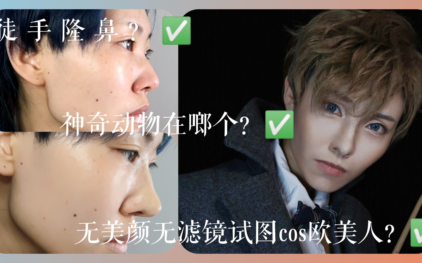 cos小雀斑居然忘了化雀斑?假鼻子营业!换脸cos欧美人!神奇动物在哪里纽特cos仿妆 妆面记录