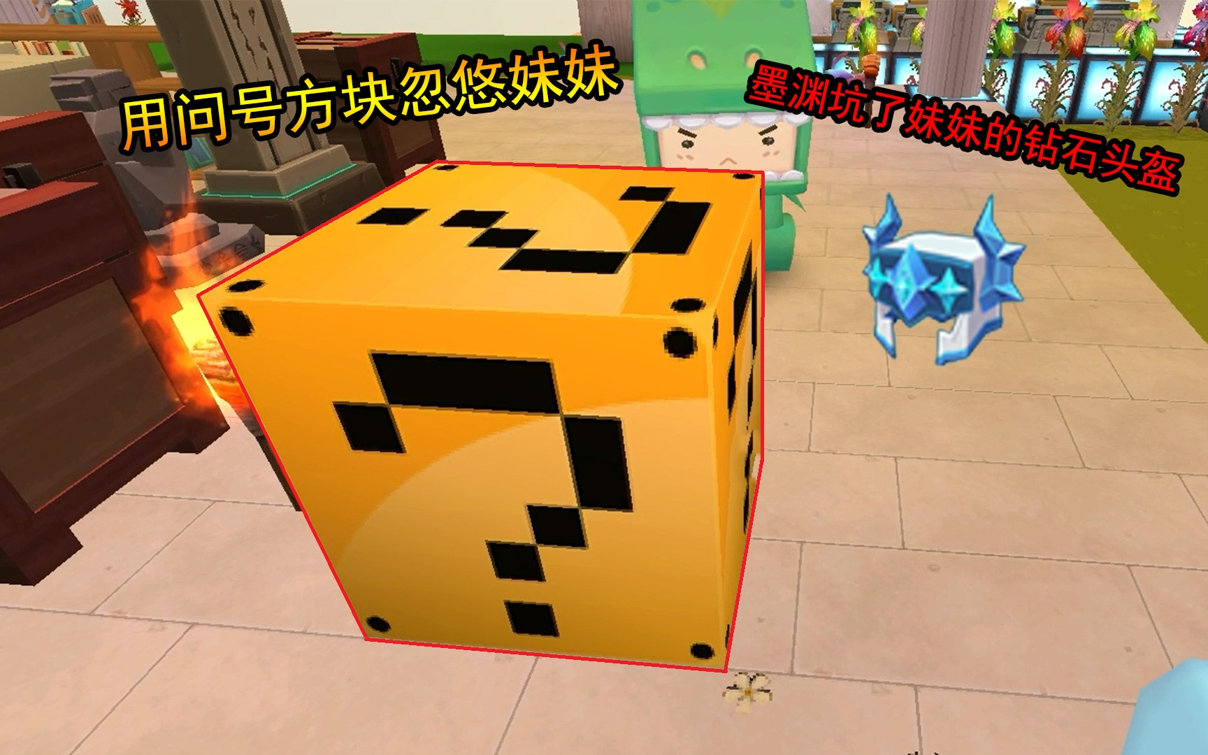 迷你世界29:墨渊坑了妹妹的钻石头盔,还用问号方块忽悠妹妹