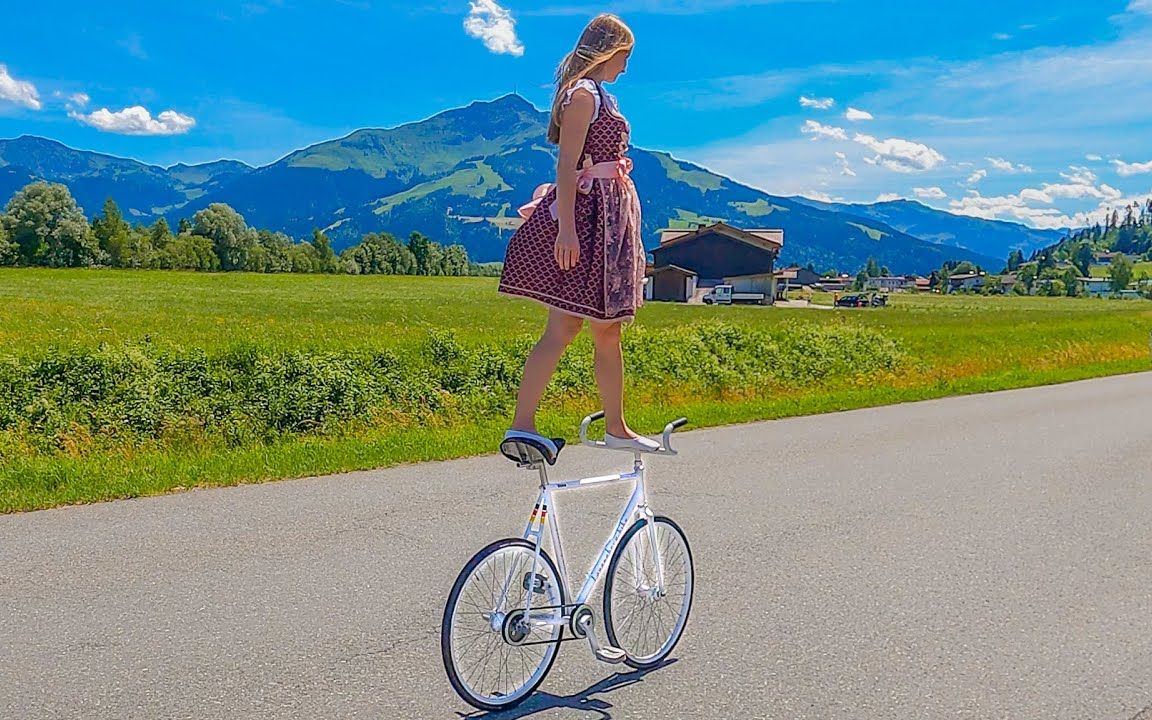 不可思议的自行车技巧与美丽的奥地利风景相映成趣