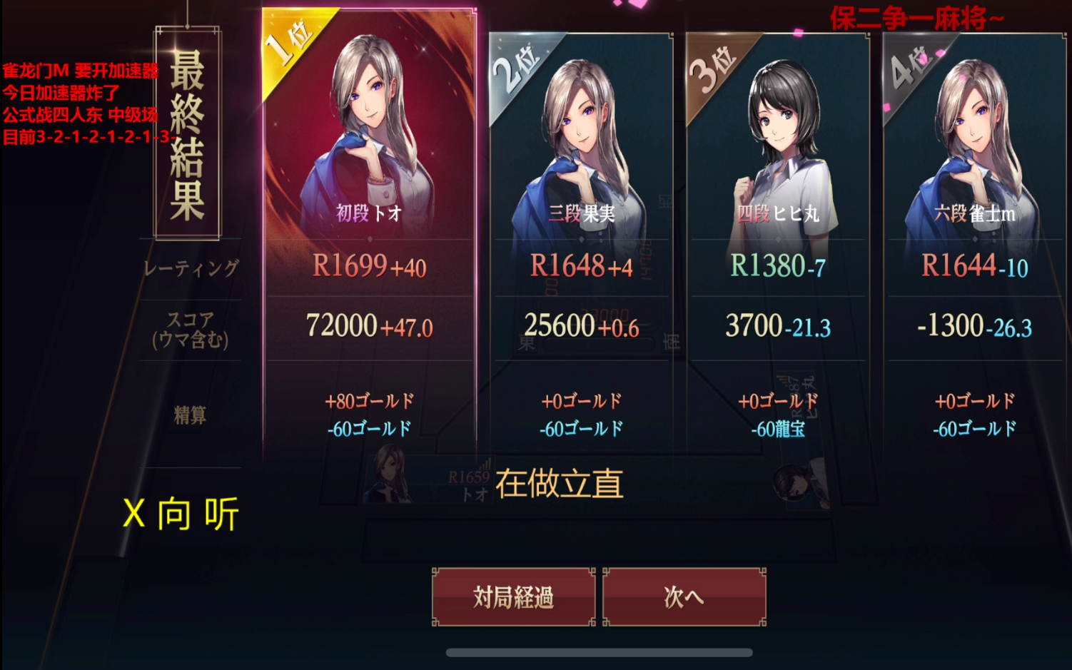 雀龙门 全程直播 第八局东 1位