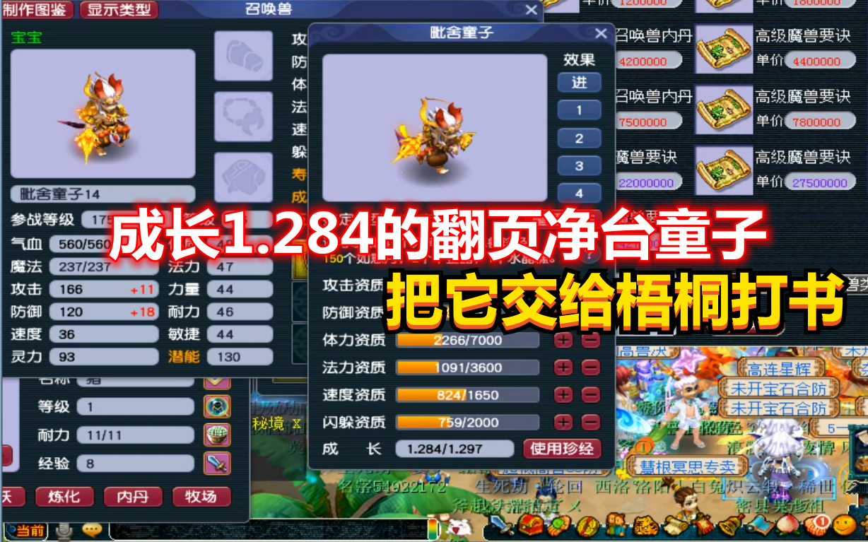 梦幻西游:成长1.284的翻页净台妙谛童子,号主把它交给梧桐打书