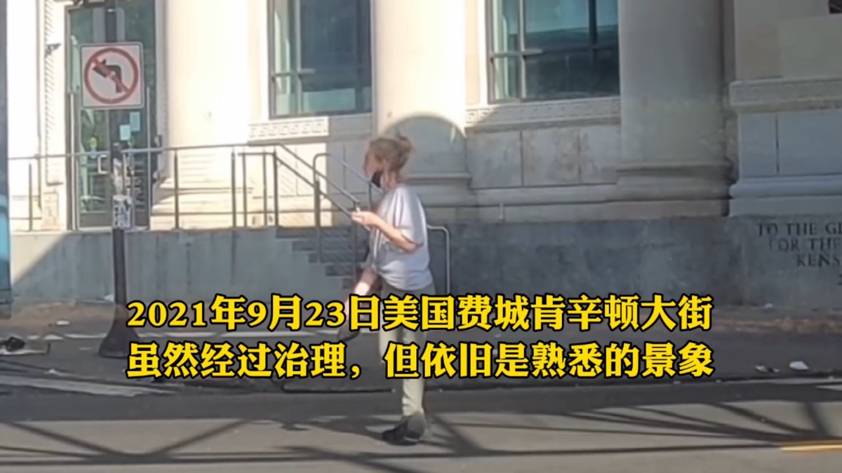 美国费城肯辛顿大街最新景象,经过治理,流浪汉依旧扎堆聚集,现实版丧尸围城