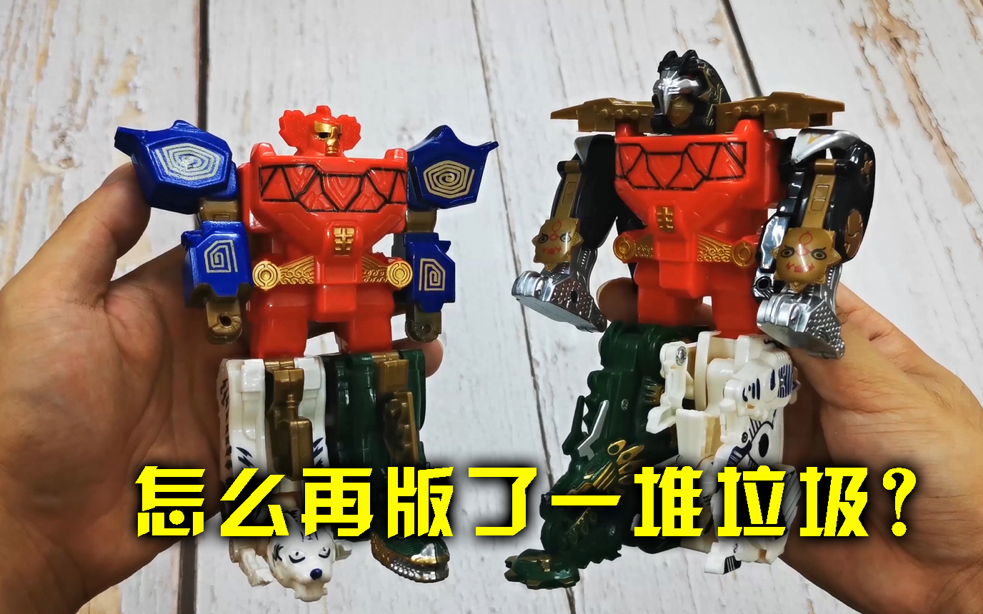 2016年,可能是为了给当时上映的新神兽金刚电影造势吧,再版了一些一代神兽金刚的产品,但再版的厂商由孩之星变成了现在的BIAN,直接后果就是玩具质量稀烂,原本初版的神兽金刚虽然是山寨产品,但好歹品质还是有点强的,当年DX版还有一大块合金件,能让人感到“这是正版该有的质量”,结果这再版品质跟新南星的新神兽金刚比简直有过之而无不及