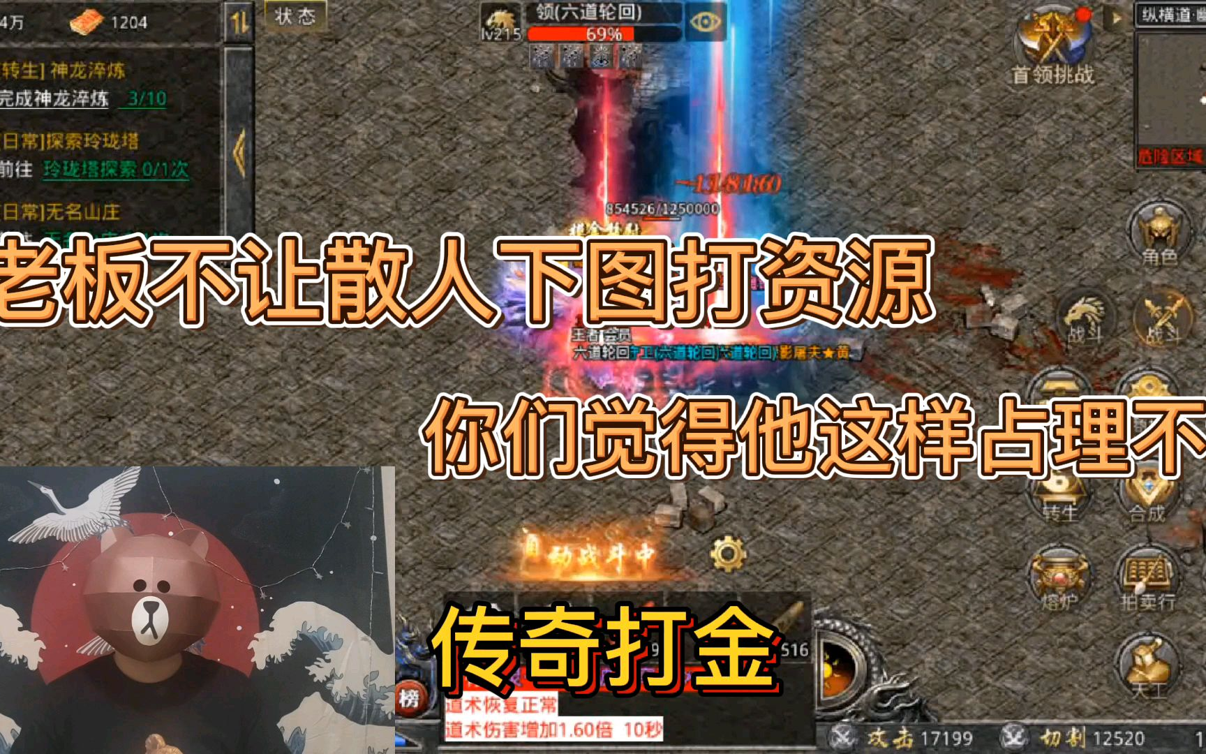 传奇打金:老板不让散人下图打资源,你们觉得他这样占理不?