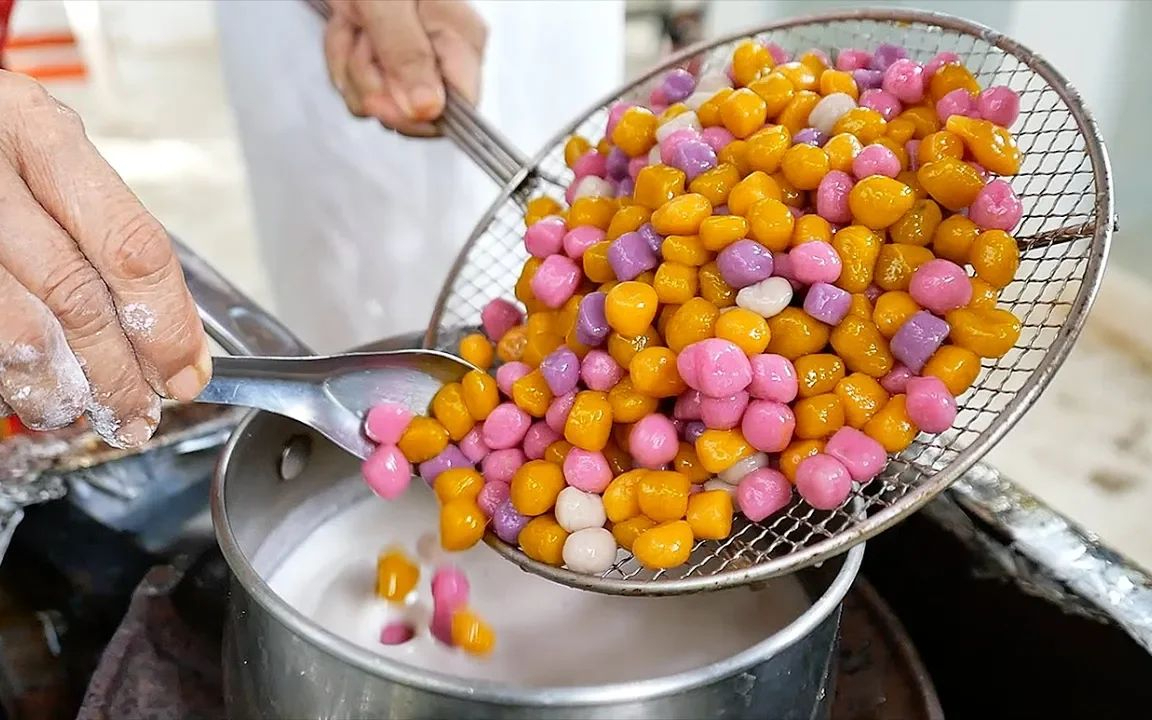 【泰国美食】纯天然的“彩虹球”椰奶奶茶