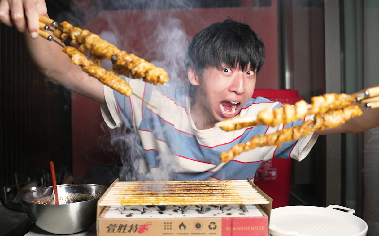 街边摊好吃的烤面筋,在家用简单的食材就能制作,帅小伙绝了!