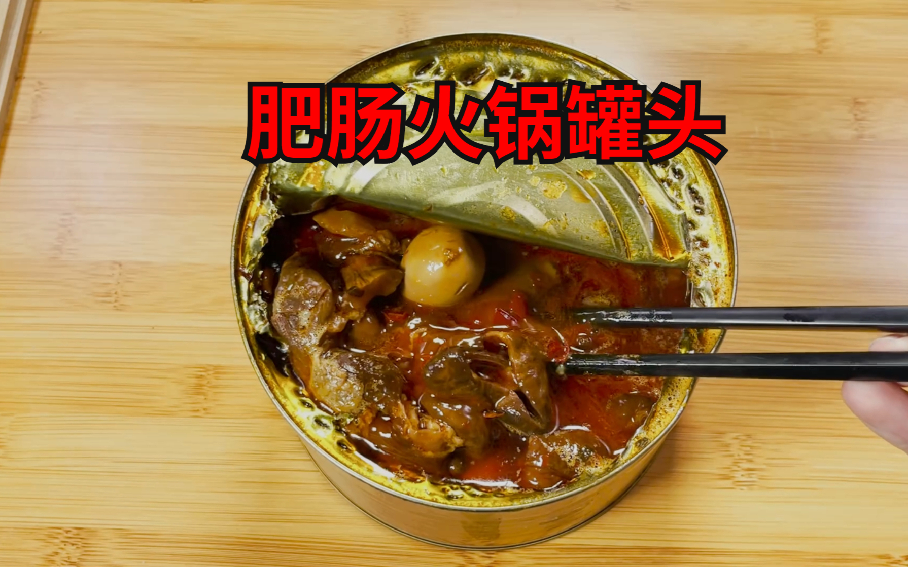 试吃70元超大军用肥肠火锅罐头!一罐3斤重!一打开就…
