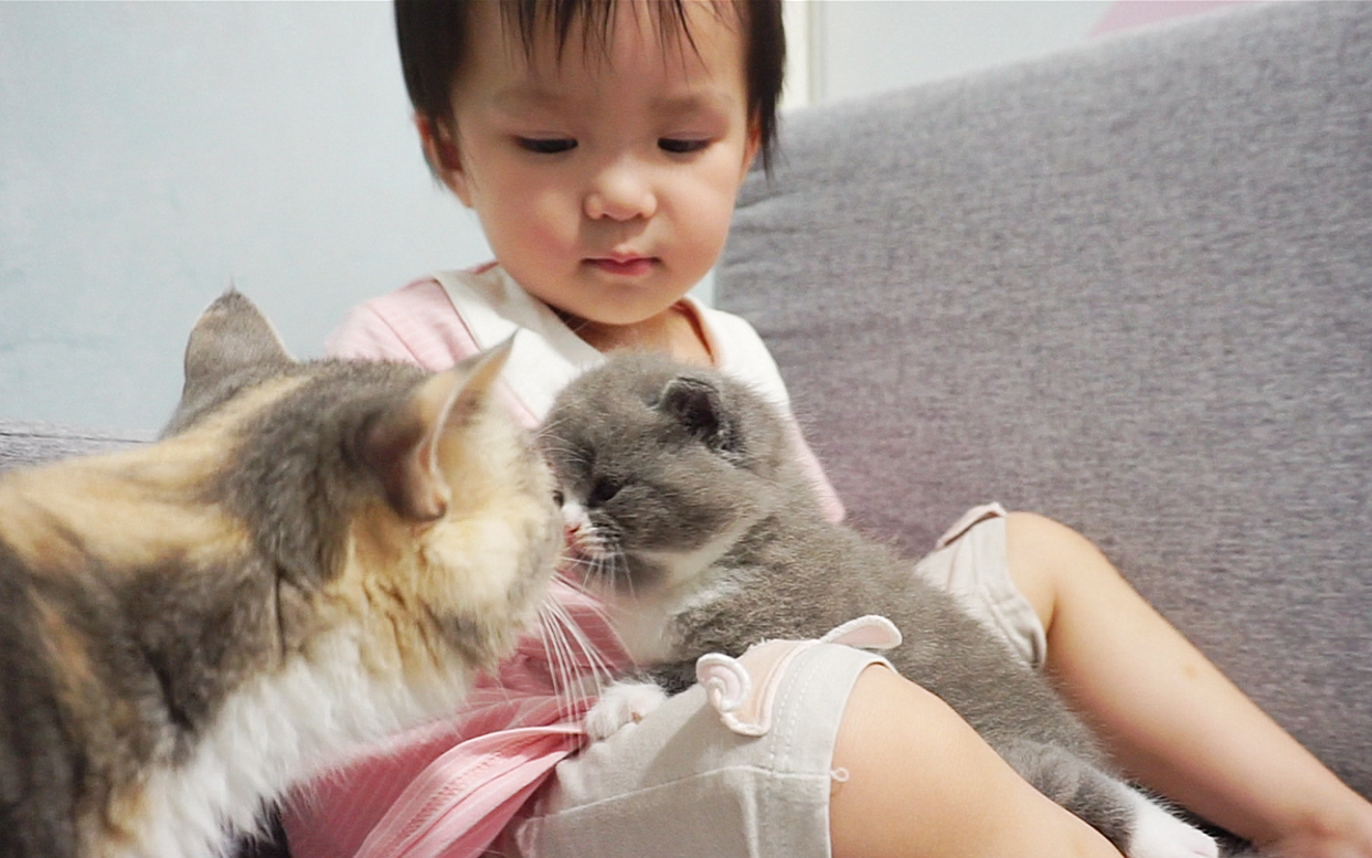 2岁宝宝第一次看到刚出生的小奶猫,见证了生命的神奇!