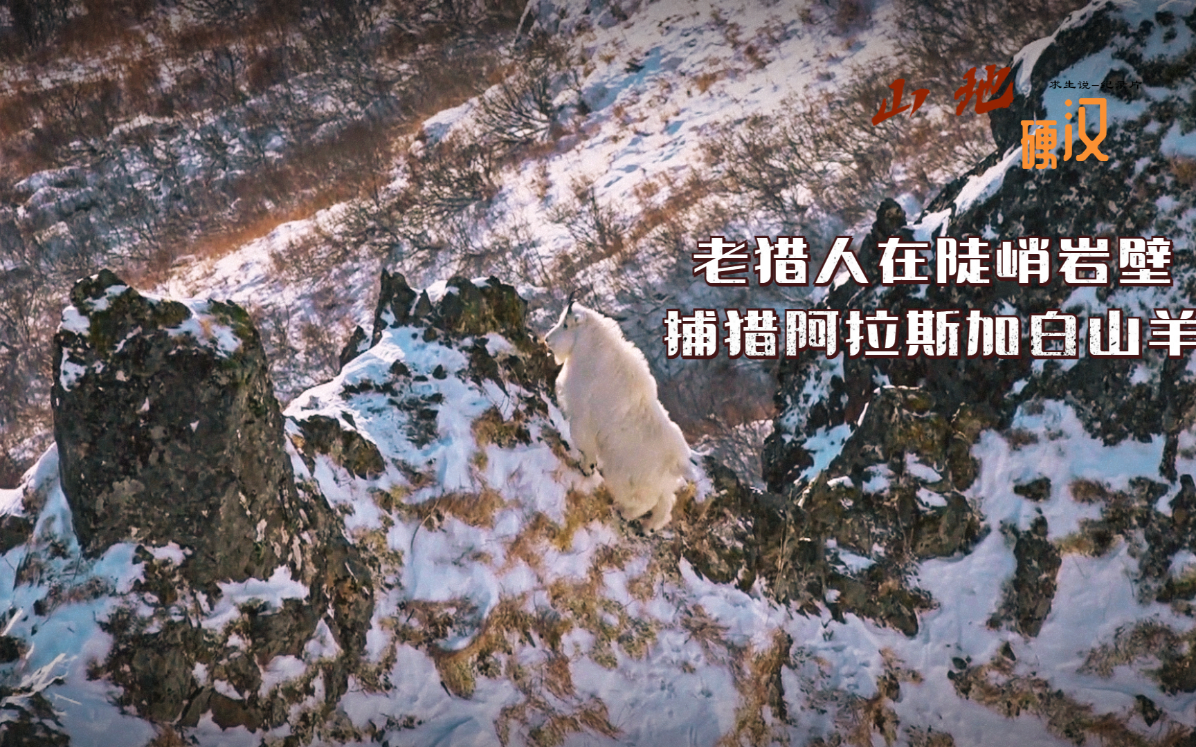 山地硬汉:老猎人在陡峭岩壁捕猎阿拉斯加白山羊