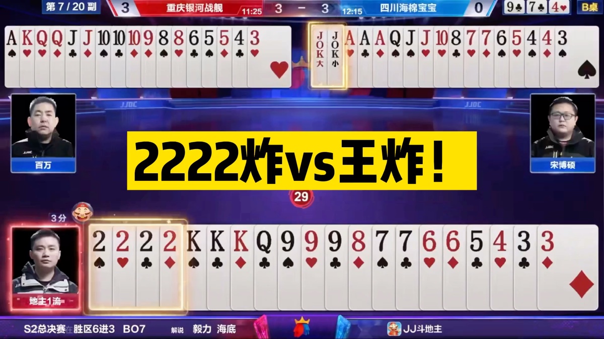 斗地主:2222炸vs王炸!神级算牌太烧脑,拆牌大牛神出鬼没