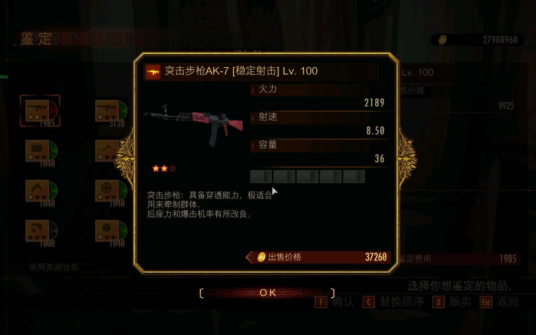 鉴定结果为突击步枪AK-7 [稳定射击] Lv.100(5 slots).