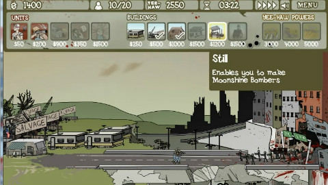 5个关卡,游戏目的就是用最短的时间把僵尸城市推爆(没错!淦他娘的推爆!)