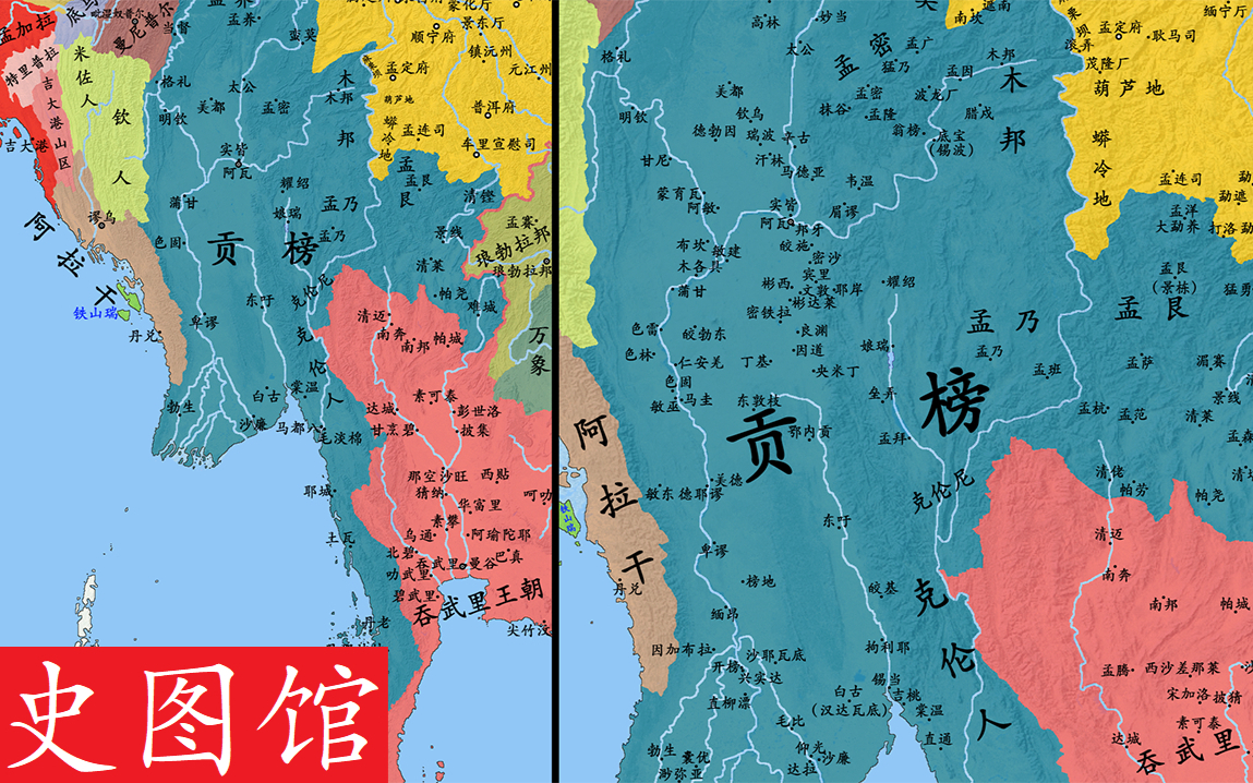 【史图馆】缅甸历史地图(二十七):贡榜-吞武里战争