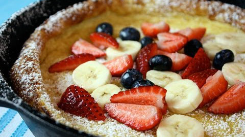 谁能抵抗刚出炉的, 蓬松诱人热气腾腾的荷兰烤松饼呢? 再搭上香甜可口的当季水果, 保证让你永生难忘。 用料清单请看评论区。