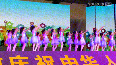 小学女生们在一起表演儿童节的节目