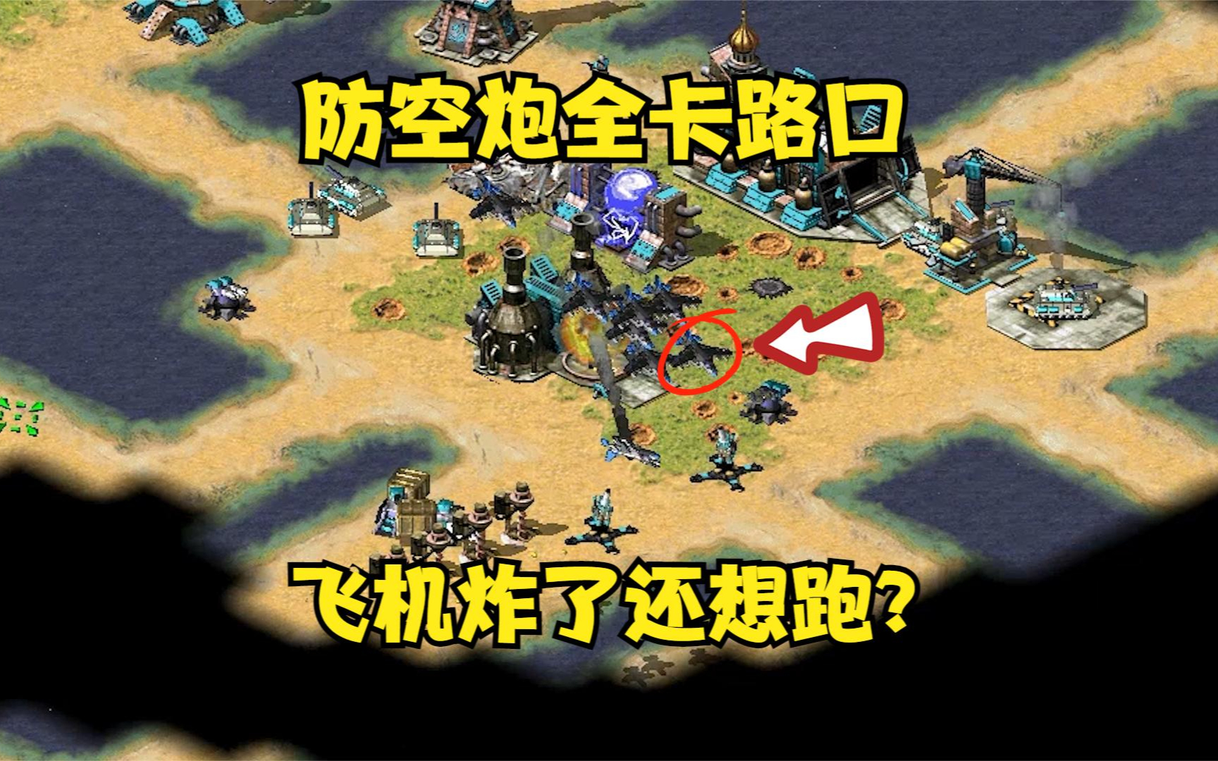 红警防空炮全部卡在各个路口!飞机来轰炸了还想跑全击落!