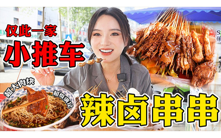 辣卤串串超大肉块,仅此一家小推车!