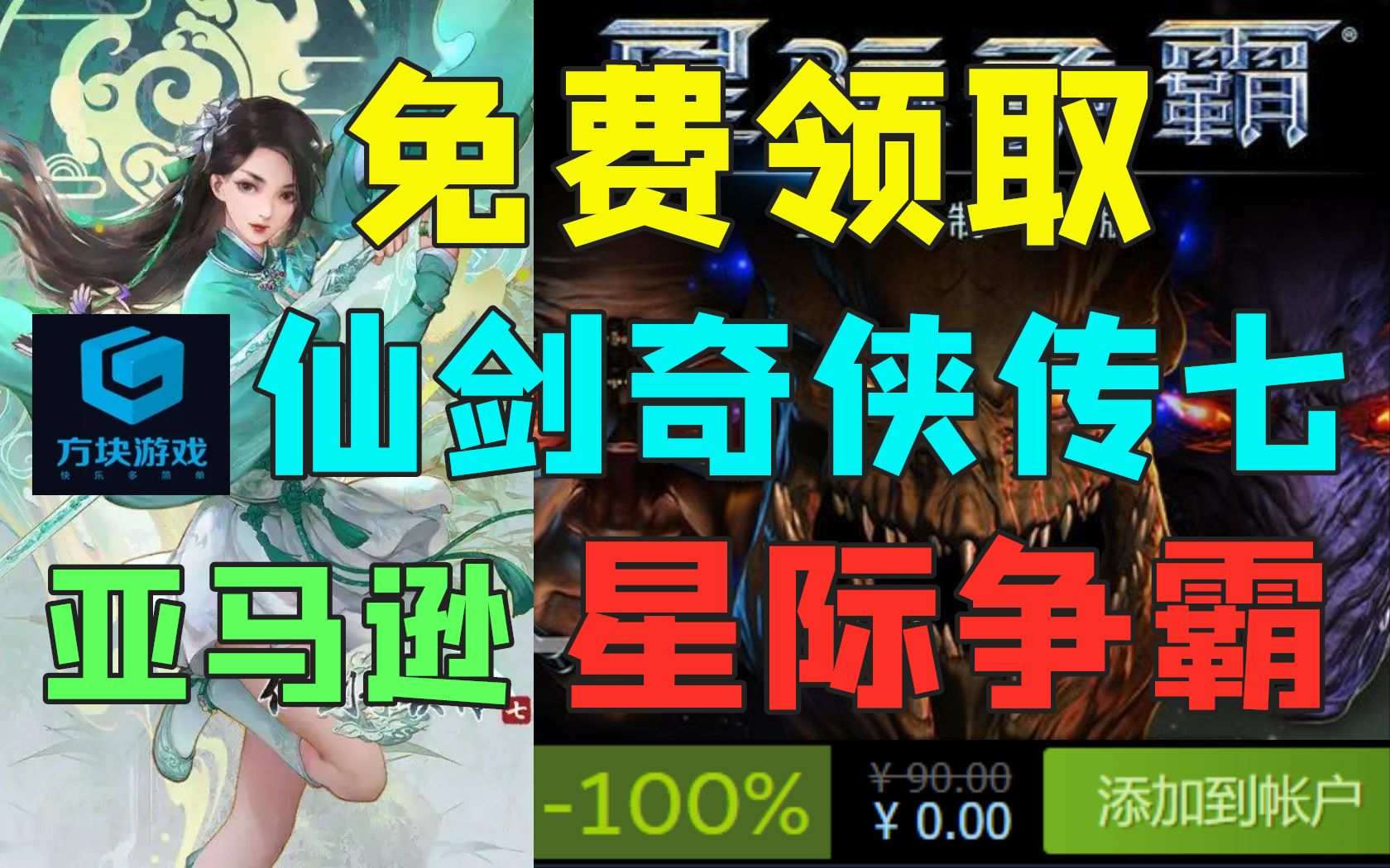 方块免费领取《仙剑奇侠传7》|亚马逊会免白嫖《星际争霸:重制版》《灾厄逆刃》等多款游戏