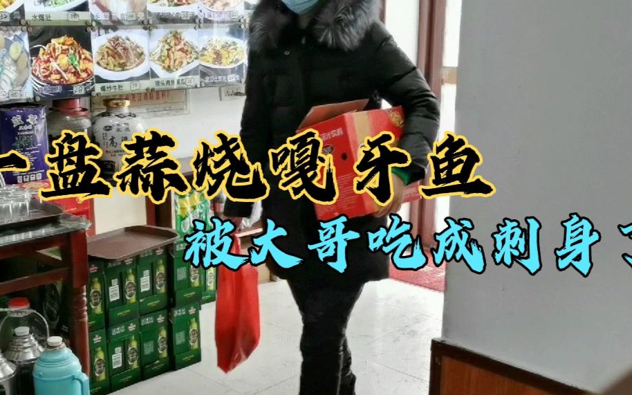一盘蒜烧嘎牙鱼,被大哥吃成刺身了,鱼骨造型别致,鱼肉一扫而光