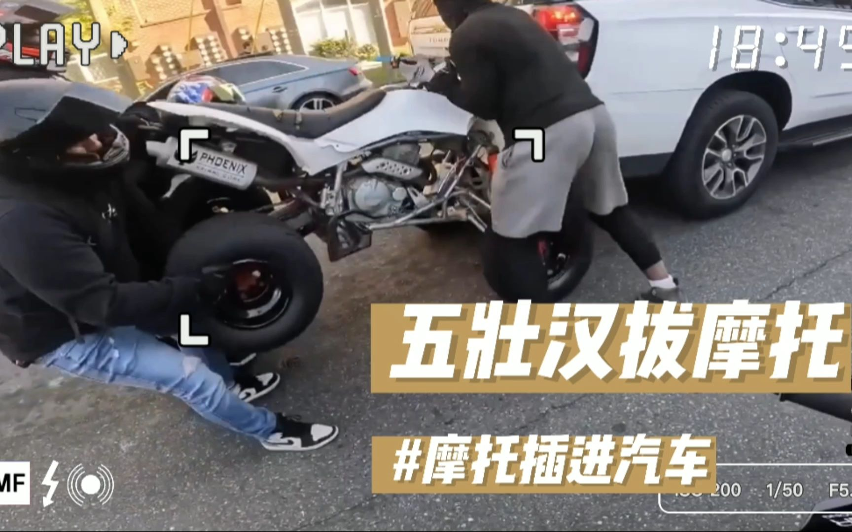 摩托车事故合集-摩托插入汽车,五壮汉全力也没拔出来!