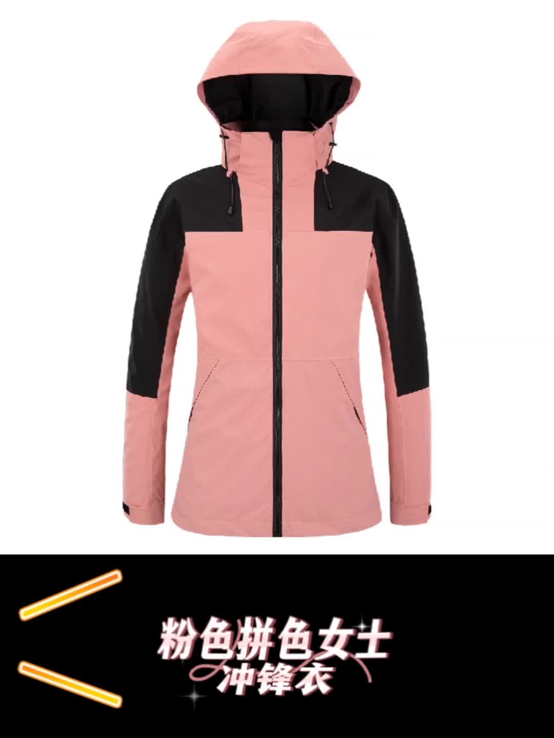 粉色拼色女士冲锋衣