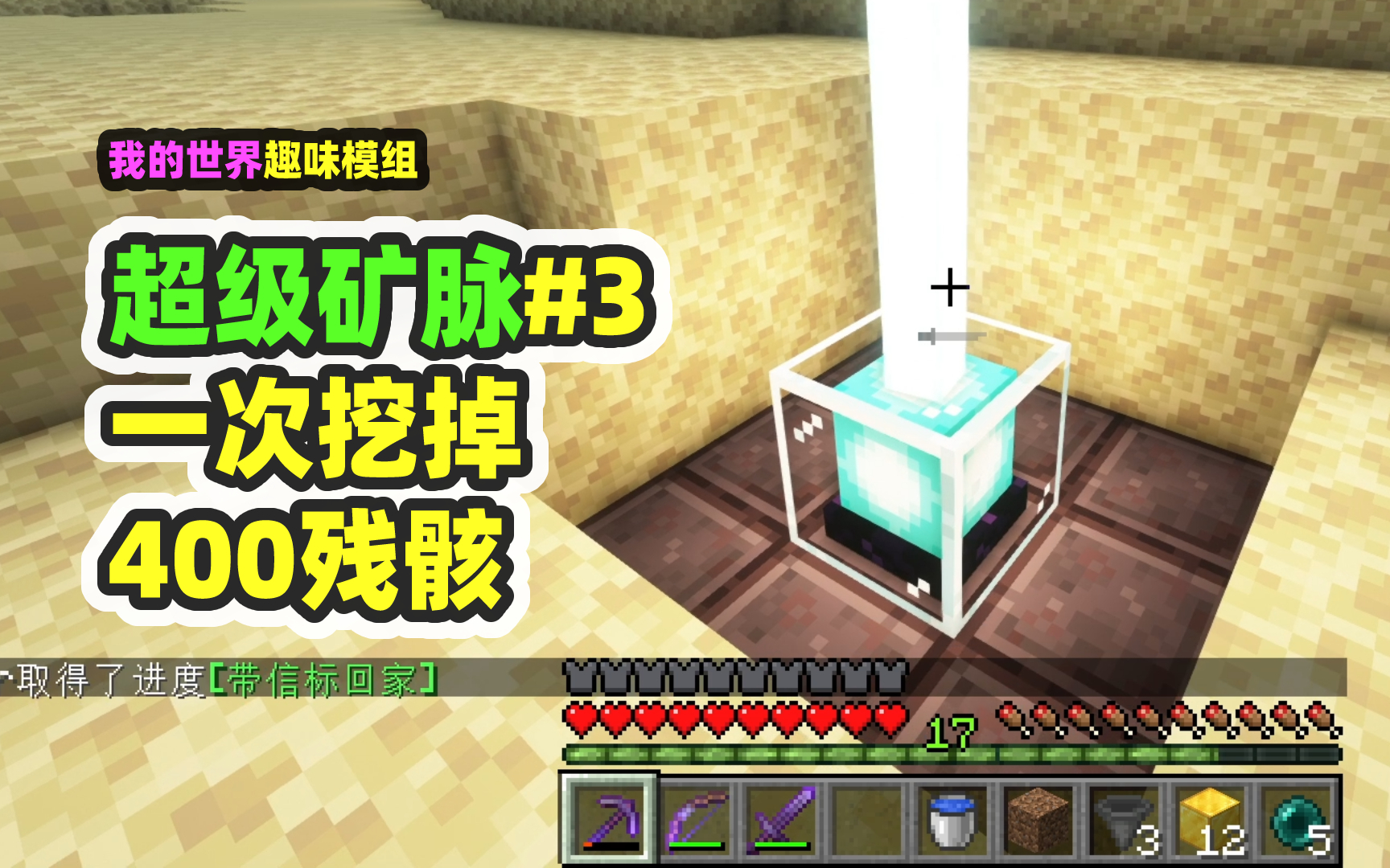 我的世界:超级矿脉3,一次挖400残骸,做出下界合金信标!