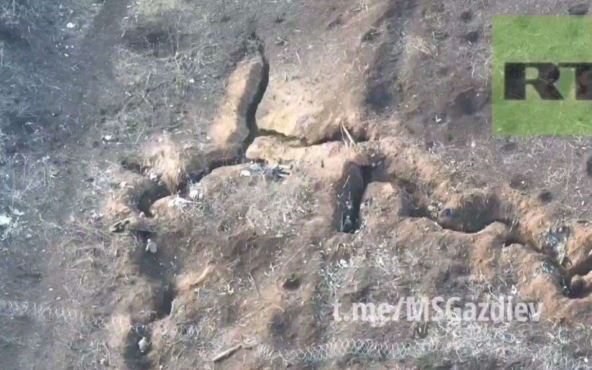 俄军士兵从乌克兰战壕左侧摸入,朝中部的防空洞里扔燃烧弹,然后与防空洞里出来的乌克兰士兵近距离斗舞。防弹衣挺住了。