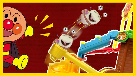 不倒翁面包超人和细菌小子的滑梯比赛游戏!