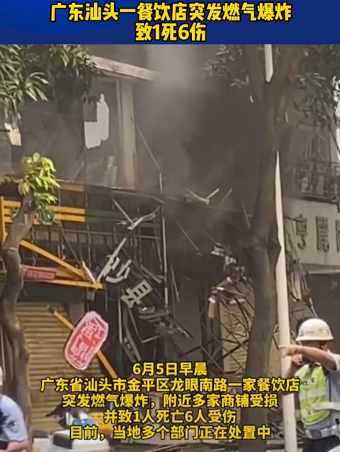 广东汕头一餐饮店突发燃气爆炸,致1死6伤