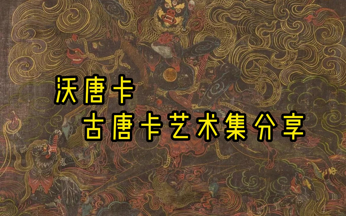 沃唐卡·18世纪西藏俄吉祥天母唐卡讲解,沃唐卡认为整幅唐卡的画面天空以深暗浓重的黑色为底色,主尊及其伴神以金汁精心描绘,诸尊火焰末端稍加晕染,画法与着色都非常讲究,尤显狰狞恐怖的气氛,有较高的艺术水准。