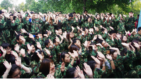 全队所有成员在规定的时间内翻越一面高4.2米的光滑墙面,在此过程中,大家不能借助任何外界的工具,包括:衣服、皮带、绳子等。所能用的资源只有每个人的身体。