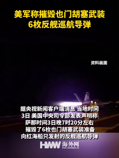 美军称摧毁也门胡塞武装6枚反舰巡航导弹
